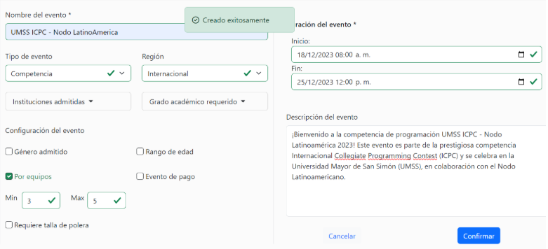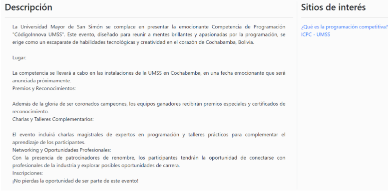 Este sistema fue desarrollado para automatizar la gestión de competencias internas de programación tipo ICPC en la Universidad Mayor de San Simón. Busca reemplazar procesos manuales por una plataforma centralizada y eficiente.
